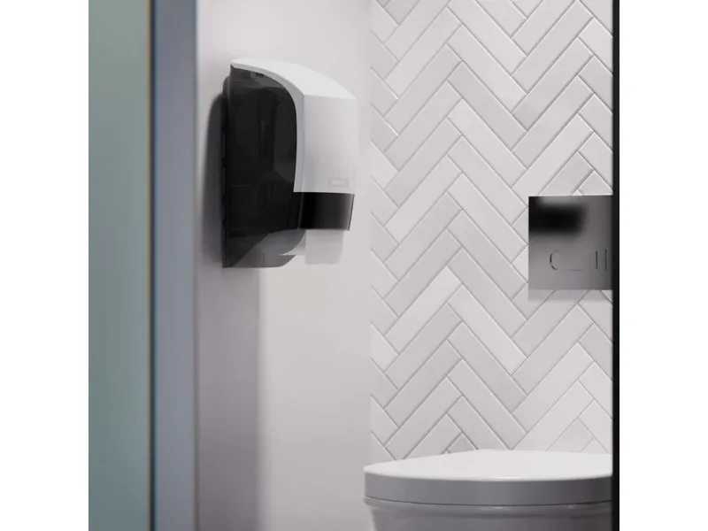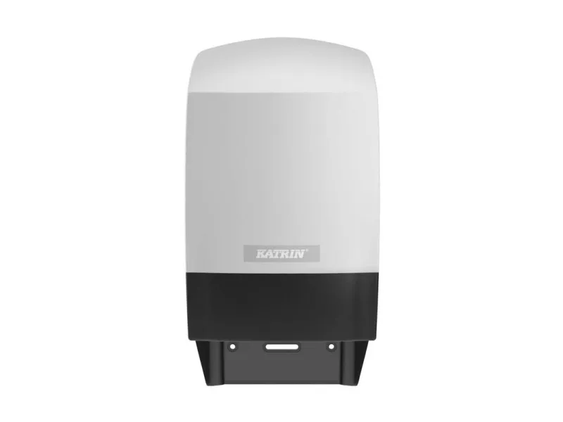 Dispenser, Katrin® toiletpapir 77496 Enkel dispenser i hvid plast - til to Katrin systemtoiletruller. Nem genopfyldning, også mens der er en rulle i, så der altid er toiletpapir klar. Når den ene rulle er tom, falder den anden automatisk ned. Der er hurtig adgang til toiletpapiret fra fronten af dispenseren. Dispenseren har et justerbart bremsesystem, som mindsker forbruget af papir. Den kan indeholde mellem 1.360-1.836 ark, afhængig af toiletpapirets kvalitet. Låsen kan bruges med eller uden en nøgle. Mål: HxBxD 31,2 x 17,2 x 15,2 cm Best.enhed: stk.