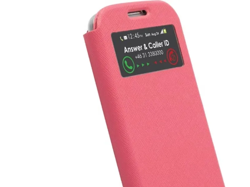Beautifully crafted in a textured material with a slim look of an urban protection for your device. This is a classic option for work or weekend.\n\nFeatures\n- See date, time, caller id and answer without opening cover.\n- Cut-outs and openings for flexible use.\n- Metal Logo.\n- Credit card pocket.\n- Sleep mode function.