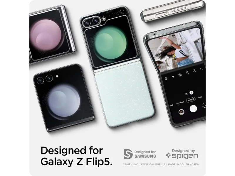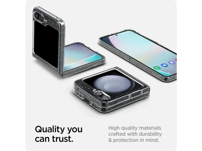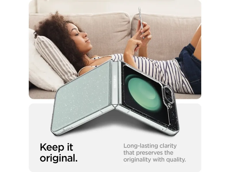 Add some sparkle to your Galaxy. Air Skin brings lightweight comfort to your Z Flip 5. Noticeably thin and stylish, yet doesn’t take scratch protection lightly with its astronomical design. Stand out and be the center of the universe. Spigen Galaxy Z Flip 5 Case AirSkin Glitter Crystal Quartz. Case type: Cover, Brand compatibility: Samsung, Compatibility: Galaxy Z Flip 5, Maximum screen size: 17 cm (6.7"), Product colour: Transparent