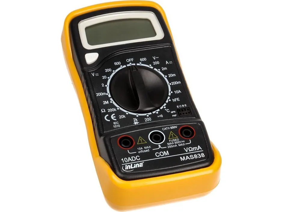 The meter is a digital hand-held multimeters with 3.5-digit LCD display for measuring DC and AC voltage, DC current, resistance, diodes, temperature and continuity test.