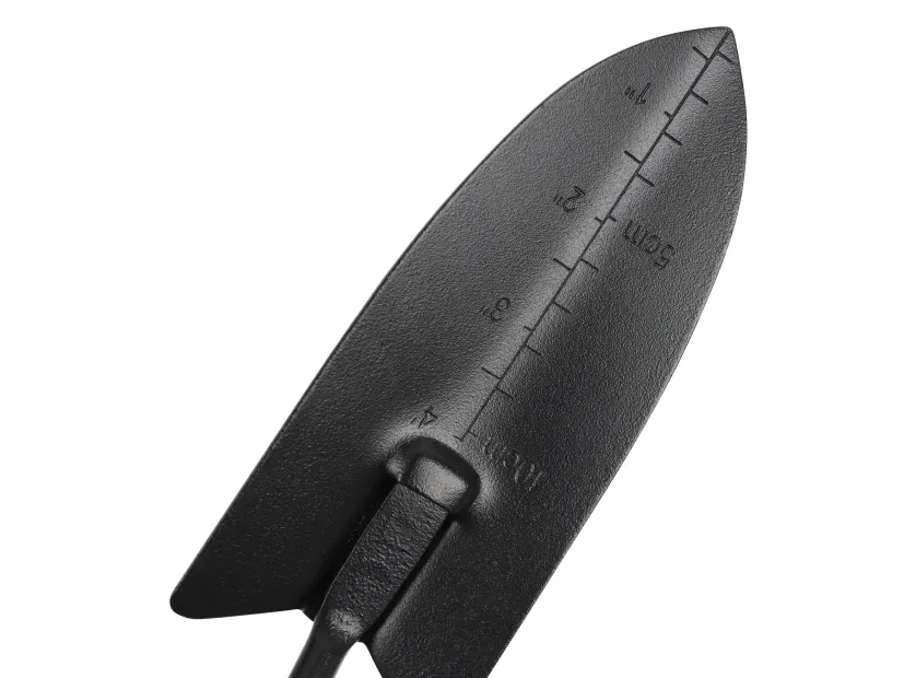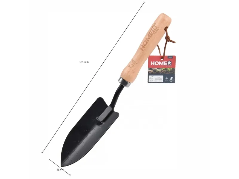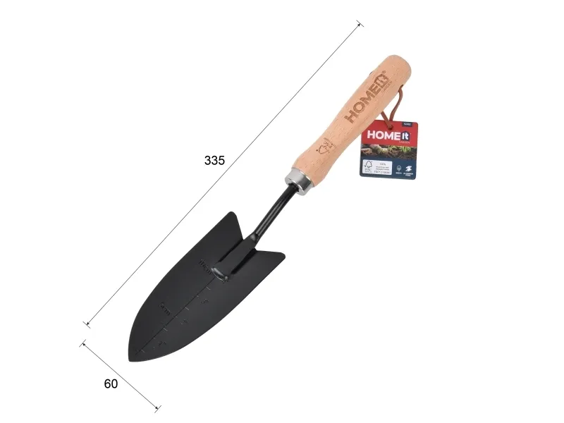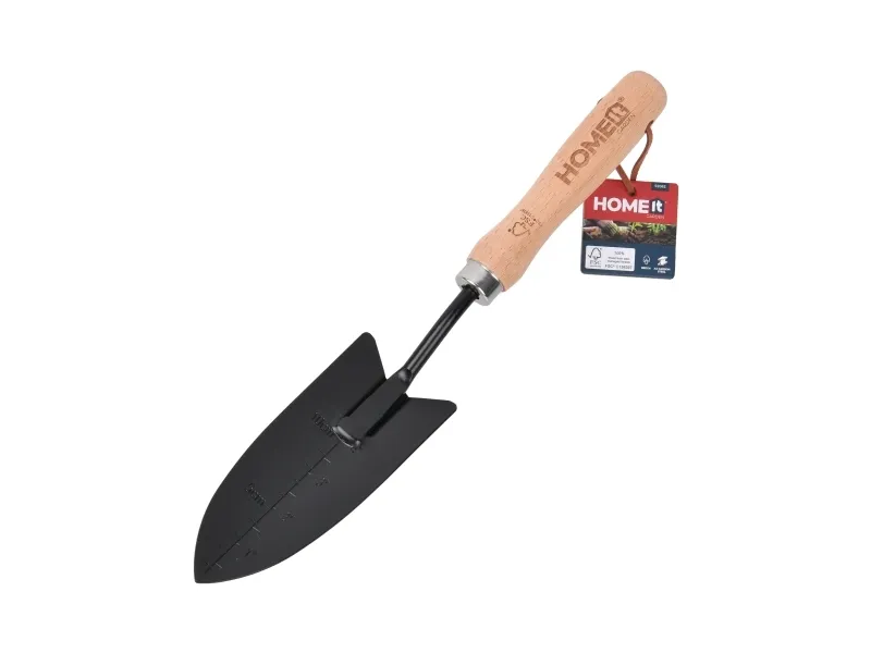HOME It® Garden smal planteskovl med hoved i sort pulverlakeret karbonstål og greb i FSC-certificeret bøgetræ. Planteskovlen er velegnet til plantning og pasning af krydderurter og mindre planter og buske i bede, højbede, plantekasser og krukker. Mål: L330×B55×T30 mm