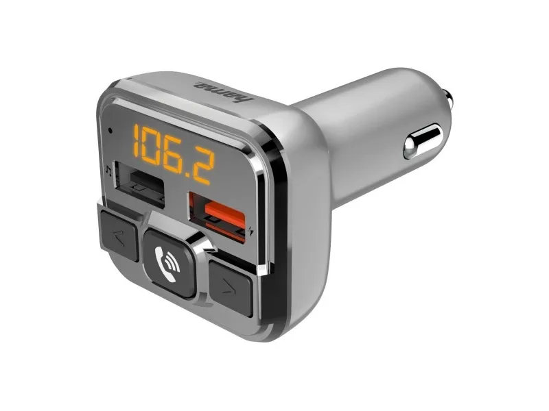 The Hama Bluetooth hands-free FM transmitter and charger provides a way to enjoy music and stay connected while driving. Designed for cellular phones and tablets, this device connects via Bluetooth, allowing you to play your favorite MP3 tracks through your car's audio system. The integrated microSD card reader supports access to a wide range of audio files for listening on the go.