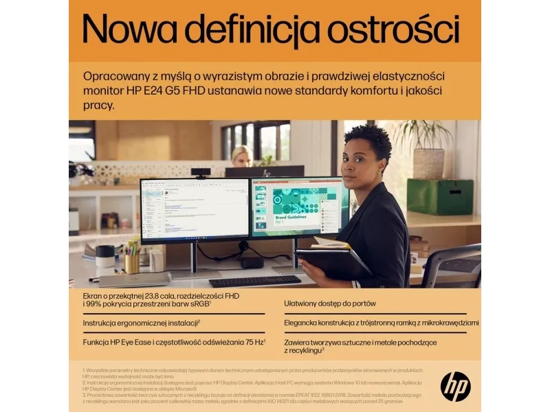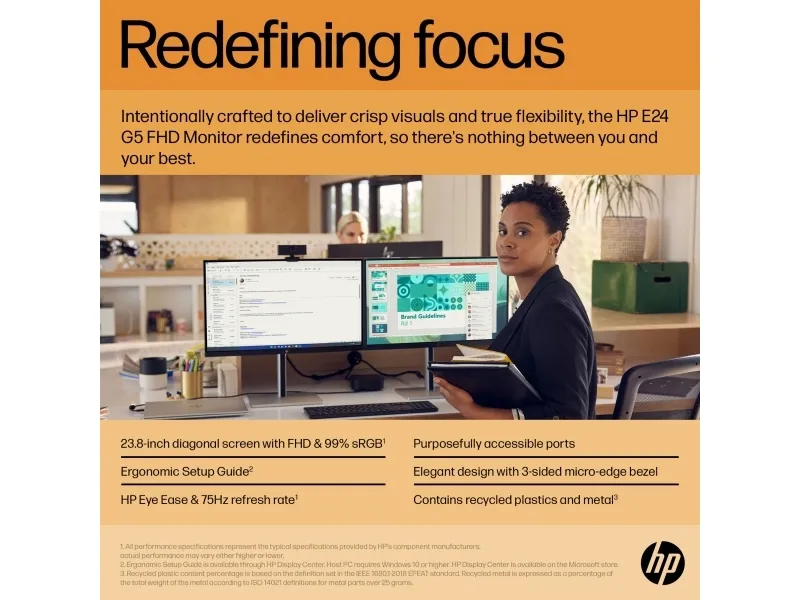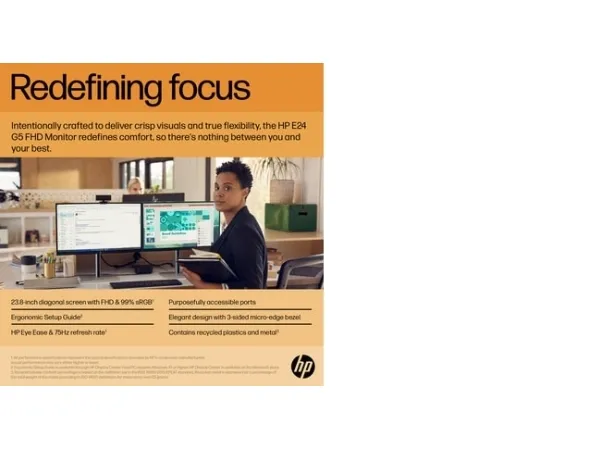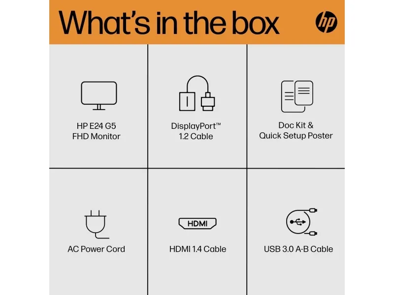 HP E24 G5 - E-Series - LED-skjerm - 23.8" - 1920 x 1080 Full HD (1080p) @ 75 Hz - IPS - 250 cd/m² - 1000:1 - 5 ms - HDMI, DisplayPort, USB - svart hode, svart og sølv (stativ) - med HP 5-års Next Business Day Onsite Hardware Support for Standard Monitors