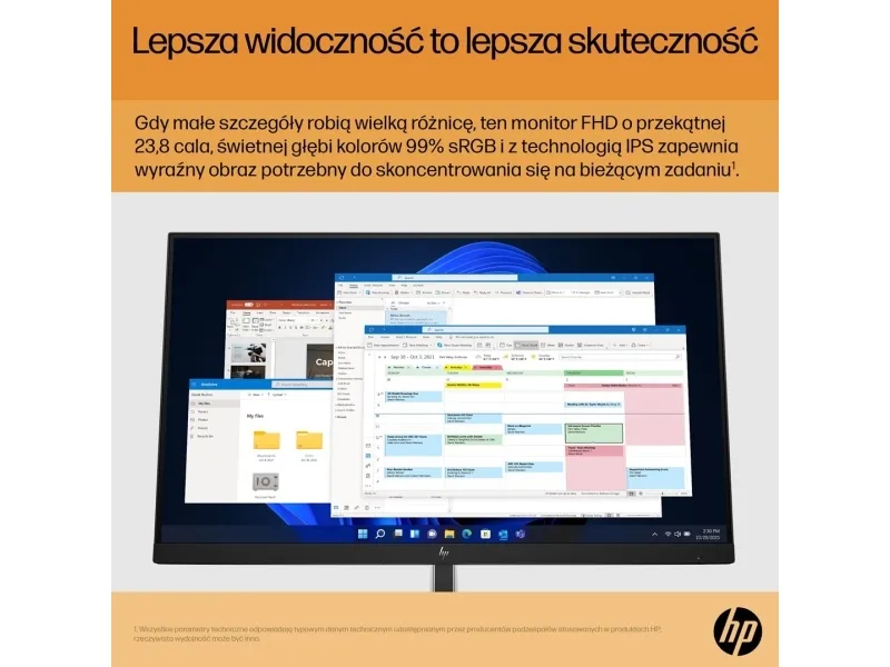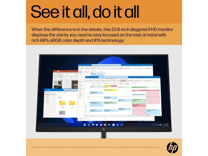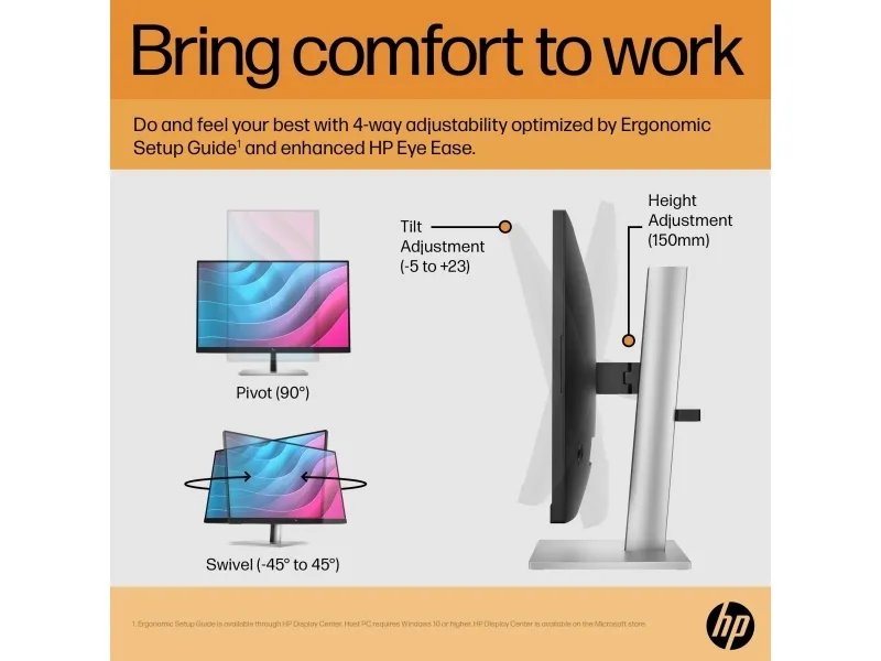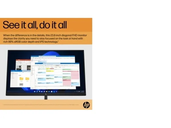 HP E24 G5-skjermen er utviklet for å forbedre produktiviteten og seeropplevelsen med sin Full HD 1080p-oppløsning og responsive TFT-teknologi med aktiv matrise. Med en opprinnelig oppløsning på 1920 x 1080 og et høyt dynamisk kontrastforhold på 8000000:1, leverer denne skjermen levende bilder og skarpe detaljer. Det antirefleksbelegget kombinert med 178 graders horisontale og vertikale betraktningsvinkler sikrer klare bilder fra ulike posisjoner, mens lysstyrken på 250 cd/m2 gir klarhet i ulike lysforhold.