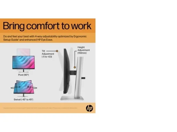 Med innebygde enheter som USB-B-hub og flere tilkoblingsmuligheter, inkludert HDMI og DisplayPort, gjør denne skjermen det enkelt å koble til ulike enheter. Den har også funksjoner som Low Blue Light Mode og Flicker-Free-teknologi, som prioriterer brukerkomfort under lang tids bruk. De ergonomiske justeringene, inkludert høyde-, vippe-, dreie- og svingalternativer, muliggjør optimal posisjonering for alle arbeidsstasjoner, noe som bidrar til en bedre holdning og reduserer belastningen på nakken.