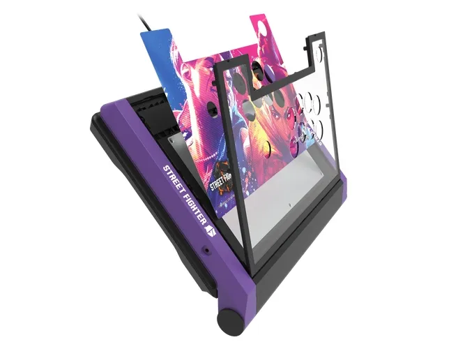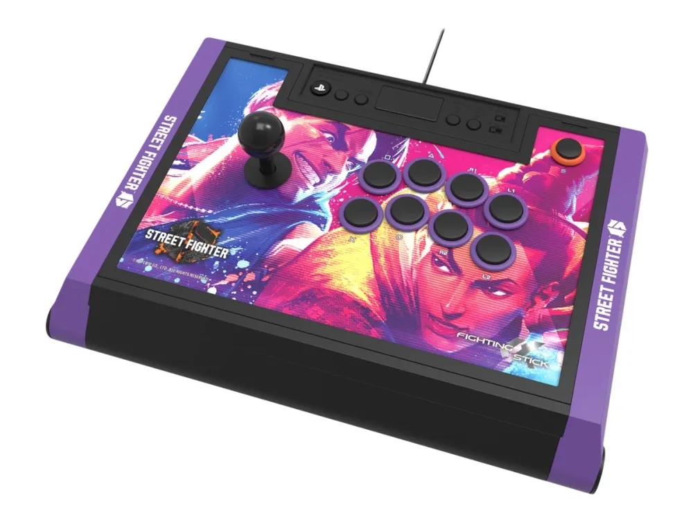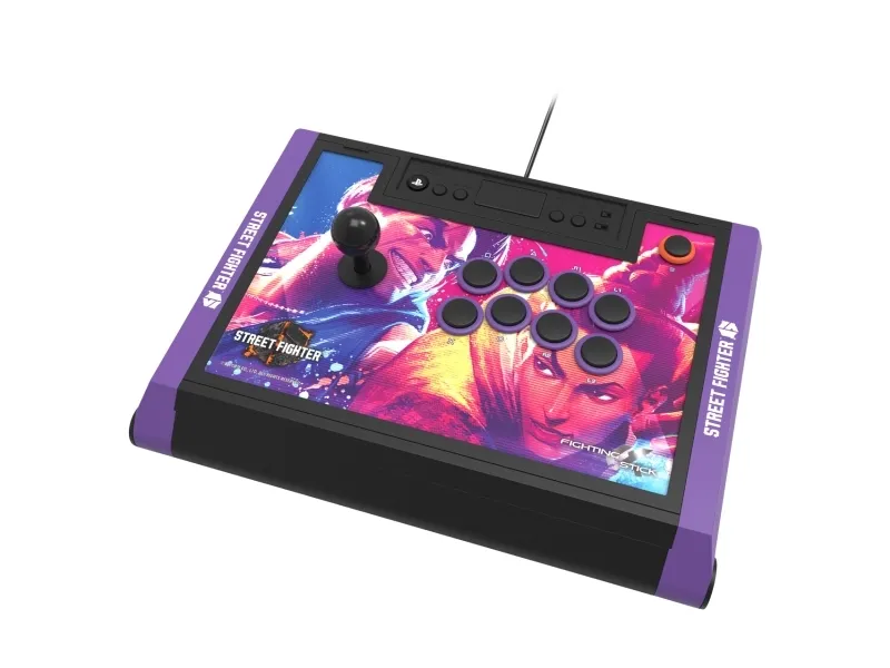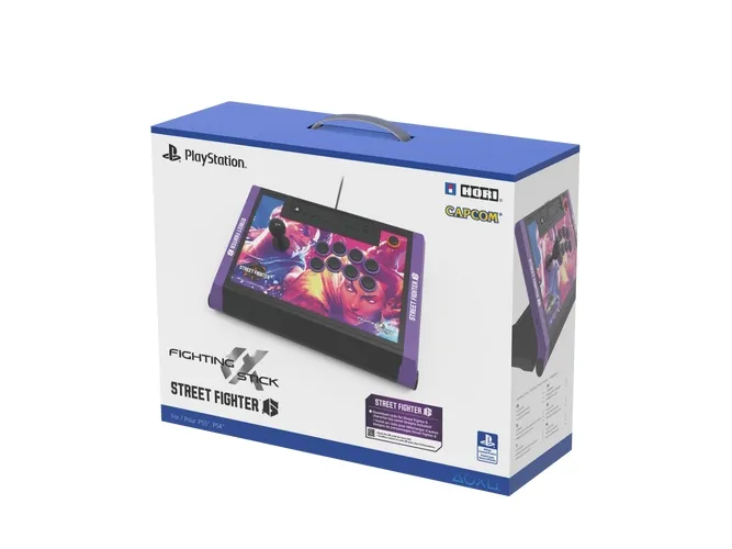 HORI's Fighting Stick a (Street Fighter 6 Edition) for PlayStation5! The tournament grade Fighting Stick a features Street Fighter 6 themed chassis, which can be opened for easy customization and maintenance. The Fighting Stick a comes equipped with HORI's legendary HAYABUSA joystick, HAYABUSA matte high-speed buttons, fully functional touchpad, tournament lock, and a 10ft cable, as well as on-board audio and mic controls to keep all focus on the fight. Take your fighting game skills to the next level and create four custom profiles through the companion app. Easily switch between profiles on the fly using the function button. Play like a pro with HORI's Fighting Stick a (Street Fighter 6 Edition). Officially Licensed by Sony and Capcom.