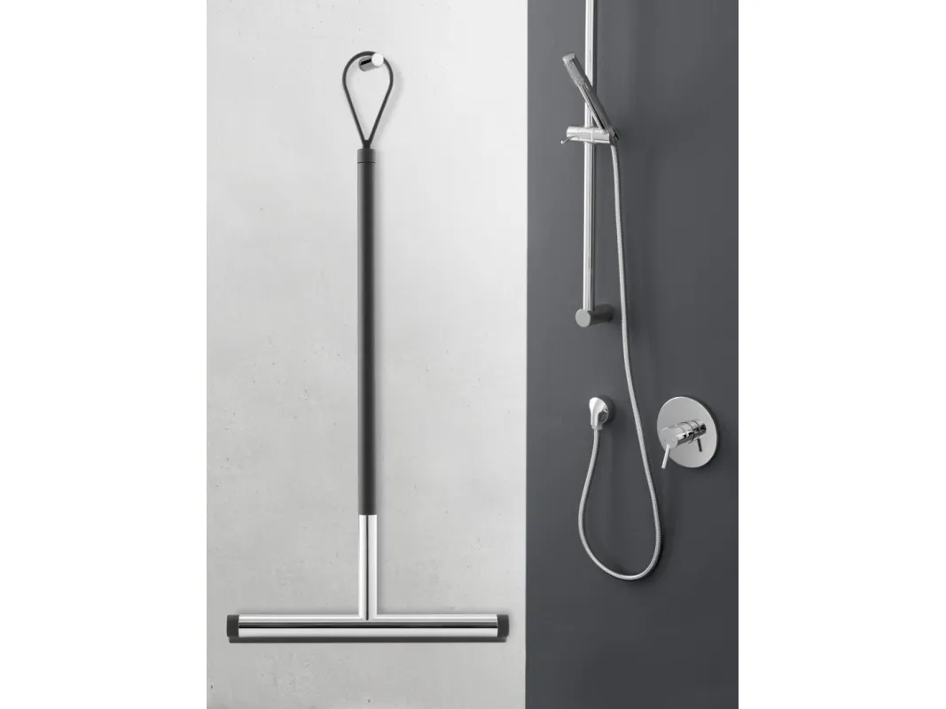 Exklusivt badrumstillbehör från designmärket ZACK. Badrumsskrapans moderna design med sina tydliga, reducerade linjer passar stilfullt i nästan alla badrumsmiljöer. Och vart man ska gå bör inte vara ett problem med JAZ, eftersom den stora, flexibla öglan gör att tillbehöret kan hängas upp på många sätt. Den högblanka polerade 18/10 rostfria stålkroppen på torkaren står i tydlig kontrast till de matt svarta plastdelarna på handtaget och de två ändlocken.Den mjuka gummiläppen som sticker ut till torkarens ytterkanter garanterar utmärkta rengöringsresultat. Den kan enkelt bytas ut, reservdel.