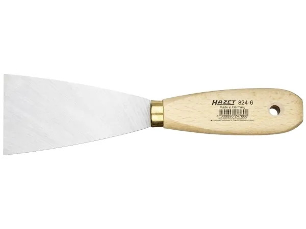 Fjernelse af tapetrester eller lim fra overflader ∙ fyldning af kabelslidser eller installationsdåser ∙ spoling af overgange i gipskartonvægge. Fleksibel, slebet klinge. Klingebredde: 60 mm Lakeret, fladt greb med hul til ophængning.