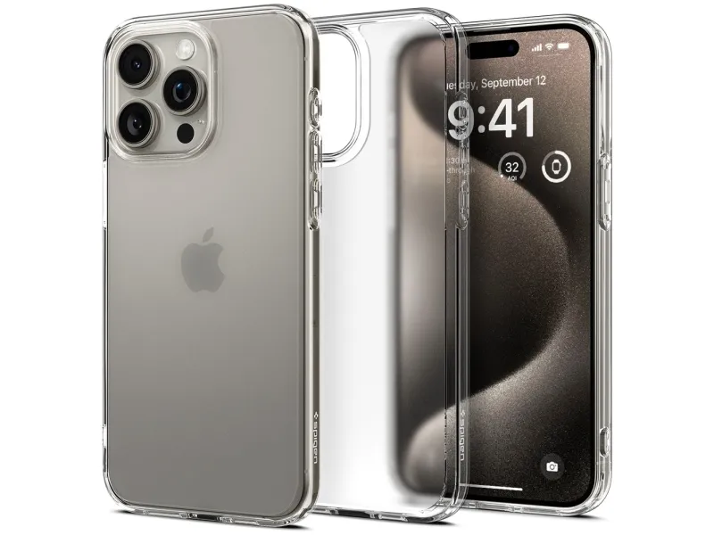 Spigen Ultra Hybrid - Baksidedeksel for mobiltelefon - polykarbonat, termoplast-polyuretan (TPU) - krystallklar - for Apple iPhone 15 Pro Max