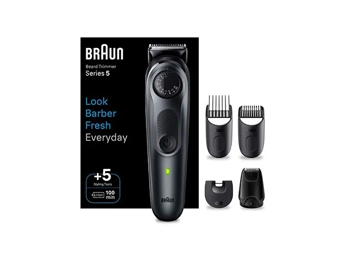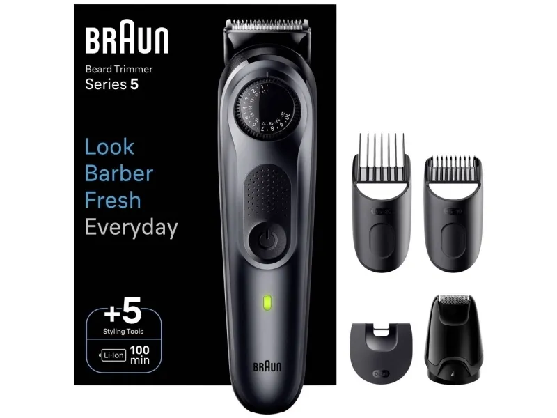 Braun BeardTrimmer 5 Beard Trimmer 5 BT5420. Minimum hair length: 0.5 mm, Maximum hair length: 2 cm, Control type: Buttons, Rotary. Product colour: Black, Country of origin: China. Power source: Battery, Operating time: 100 min, Battery type: Built-in battery. Width: 137 mm, Depth: 57 mm, Height: 282 mm. Package width: 275 mm, Package depth: 190 mm, Package height: 113 mm