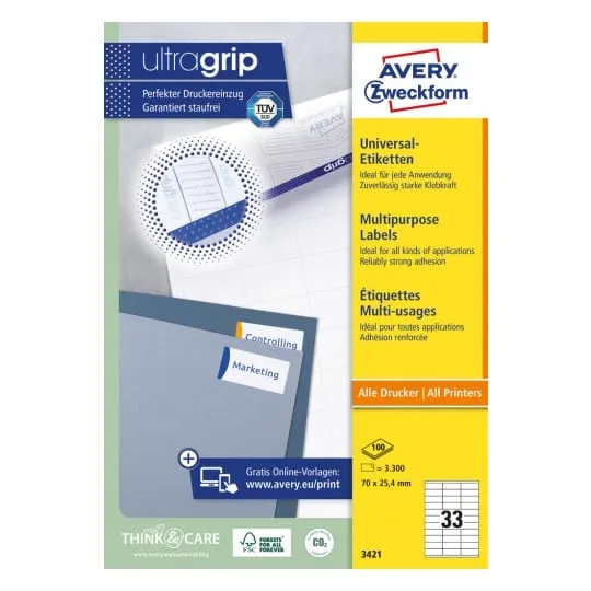 • Universaletiketter kan printes i alle printere • Med Ultragrip for præcis udskrivning uden papirstop • Velegnet til mange forskellige formål • FSC® certificerede • Design og print nemt med GRATIS skabeloner |