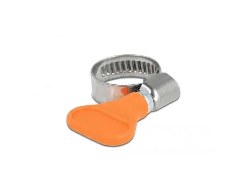 This high-quality stainless steel 400 SS hose clamp by Delock can be used to fix a hose with a diameter of 12-20 mm on a pipe end without tools. The clamp provides a secure and firm hold of the hose under pressure so that it can't be lost. It is ideal for DIY, home and garden use.