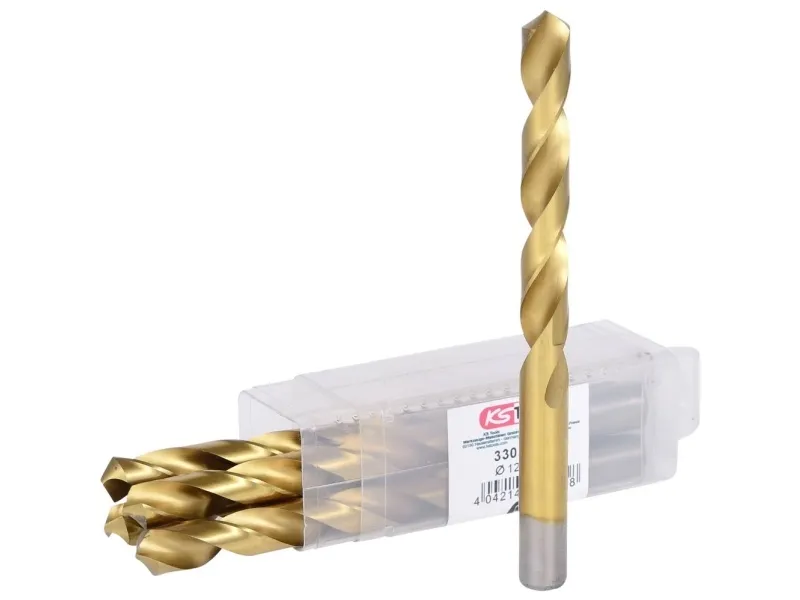 HSS tin spiralbor, 12,5 mm, pakke med 5 stk. DIN 338 type N • højreskærende • Keglekappeslibning som spidsslibning • Krydsslibning som udspidsning • 130° spidsvinkel • 20 - 30° spiralvinkel • Høj varmehærdebestandighed • Til højeste belastning • Med tin-belagt overflade • Højeffekt-stål