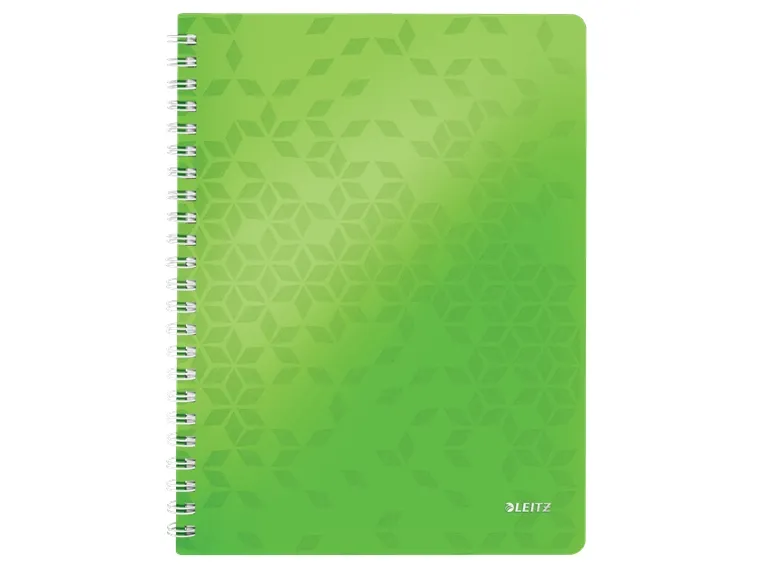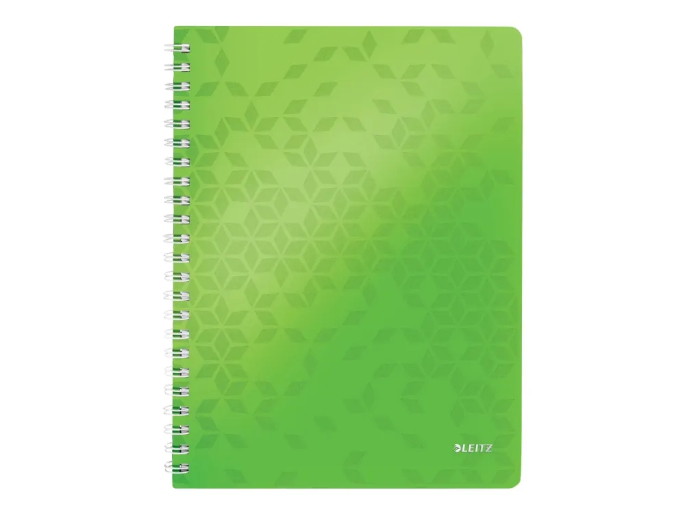 Leitz WOW - Notisbok - spiralbundet - A4 (210 x 297 mm) - 80 ark / 160 sider - rutet - 4 hull - grønn - polypropylen (PP)