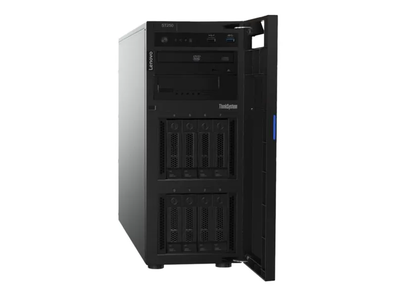 Lenovo ThinkSystem ST250 er en fullt utstyrt, rackbar tårnserver med én sokkel og enkel administrasjon for små og mellomstore bedrifter (SMB) eller eksterne kontorer/filialer (ROBO).