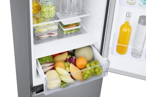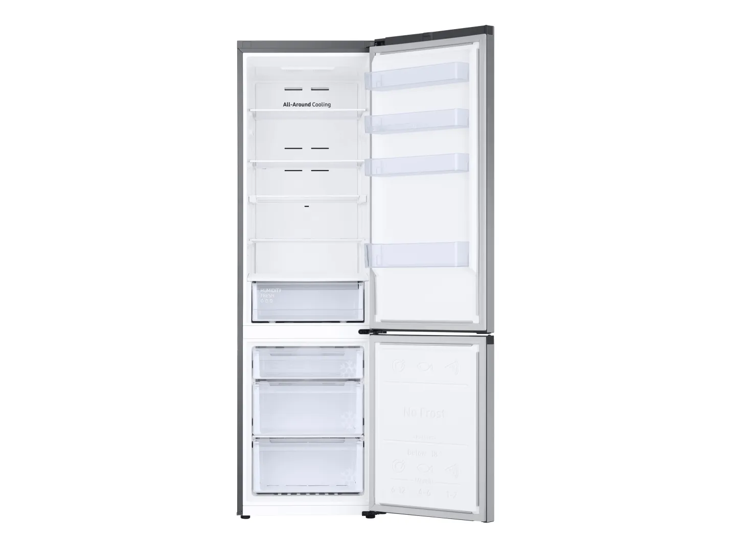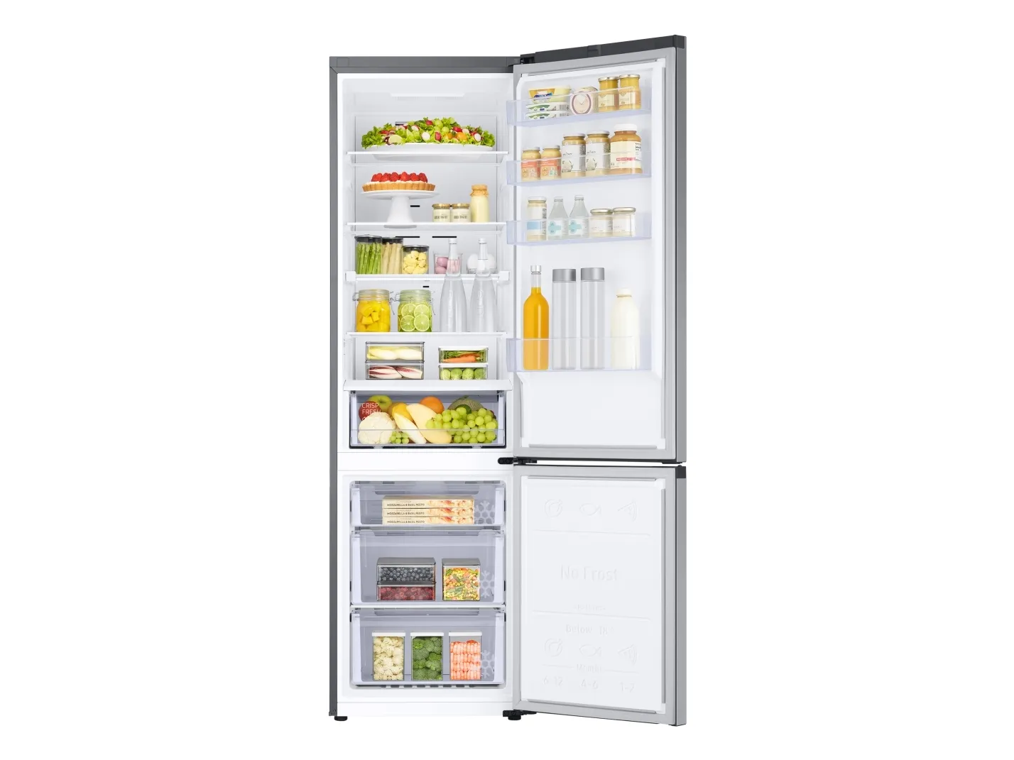 Samsung RB38C671DSA. Total net capacity: 390 L. Door hinge: Right. Climate class: SN-T, Noise level: 35 dB. Fridge net capacity: 276 L, No Frost (fridge), Multi-Airflow system (fridge), Fridge interior light, Fridge number of shelves/baskets: 5. Freezer net capacity: 114 L, Freezing capacity: 8 kg/24h, No Frost (freezer). Energy efficiency class: D, Annual energy consumption: 211 kWh. Product colour: Silver