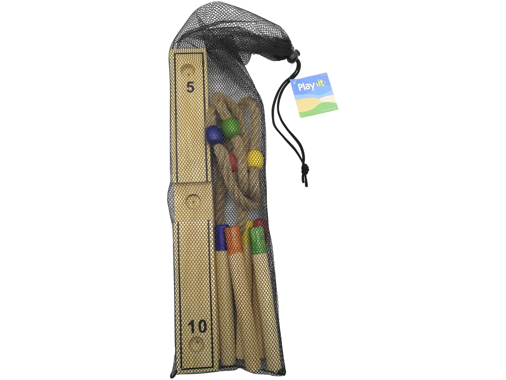 Det sjove ringspil kan spilles af børn og voksen uanset alder. Spillet leveres i en praktisk netpose, som gør det nemt at tage spillet med på farten. Ringspillet kan spilles hjemme i haven, i parken, på stranden, i sommerhuset eller på campingpladsen.