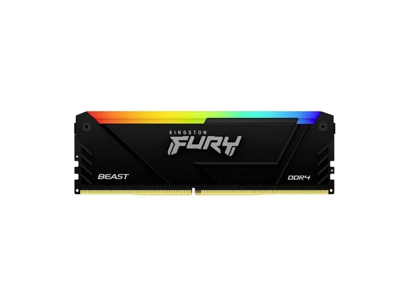 Kingston FURY Beast RGB delivers a boost of performance and style with high speeds, aggressive styling and RGB lighting that runs the length of the module for smooth and stunning effects. It features Plug-and-Play automatic overclocking at high speeds and is both Intel XMP-ready and ready for AMD Ryzen. FURY Beast RGB stays cool with its stylish, low-profile heat spreader.