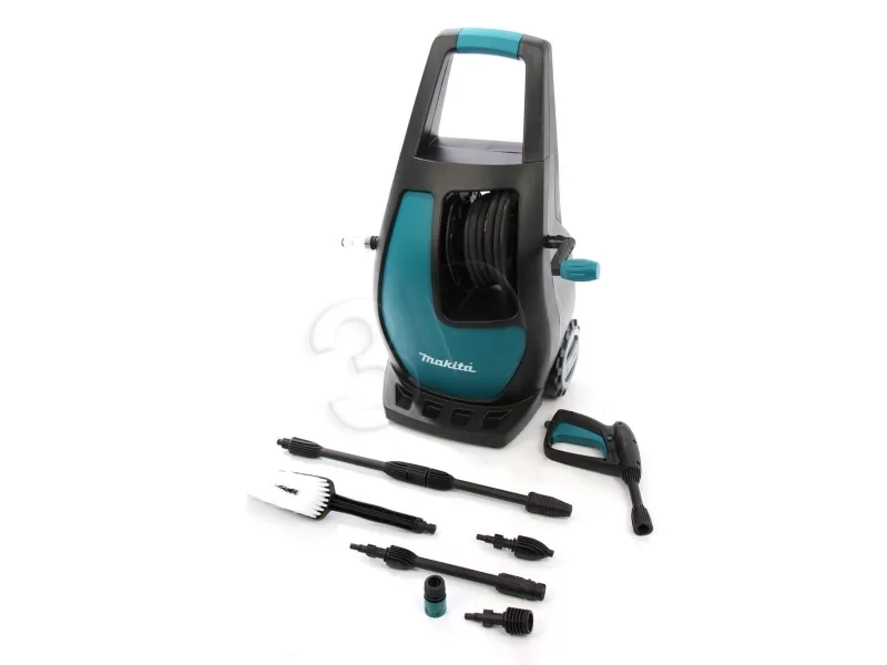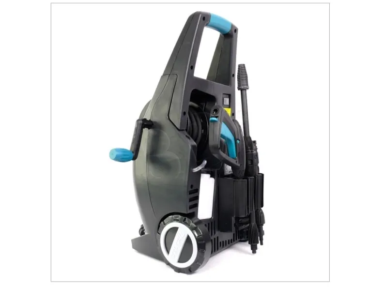 - Ideal for cleaning of motorcycles, garden furniture and balconies. - Steel reinforced spray gun. - Steel armed rubber hose. - Built-in hose reel with locking mechanism. - Quick connection for accessories and hose.