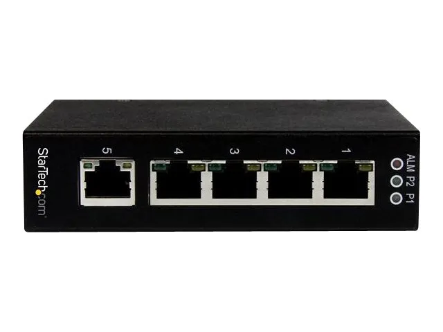 Network up to 5 Ethernet devices through a rugged, industrial Gigabit Ethernet switch - DIN / Wall Mountable. The IES51000 5-Port Industrial Ethernet Switch offers 5 Gigabit Ethernet ports in a compact, IP30-rated metal enclosure, making it the ideal network solution for harsh industrial environments such as factory floors, warehouses or large junction boxes.