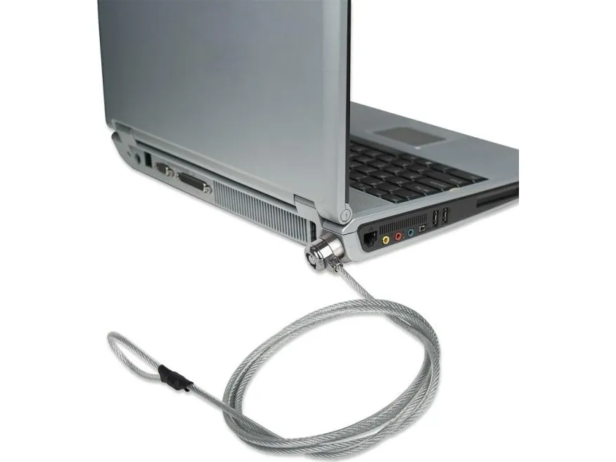 Helps protect notebook computers and data from theft. Most electronics theft is a crime of opportunity. It only takes a second to quickly steal an unprotected notebook computer from a desk or table. Millions of dollars of hardware and billions of invaluable data are stolen and unrecovered each year. The Manhattan Mobile Security Lock with its key lock (includes two keys) helps guard notebook computers, flat panel displays, projectors, cameras and other valuable portable electronics from theft. Using the built-in security slot ("K-slot"), its steel cable and all-metal construction when secured to a permanent object help resist tampering to discourage any would-be thieves.
