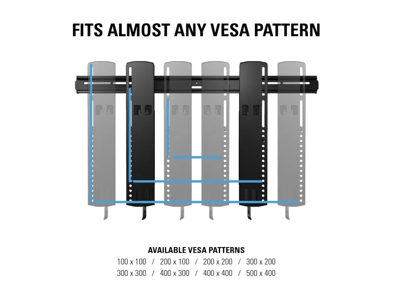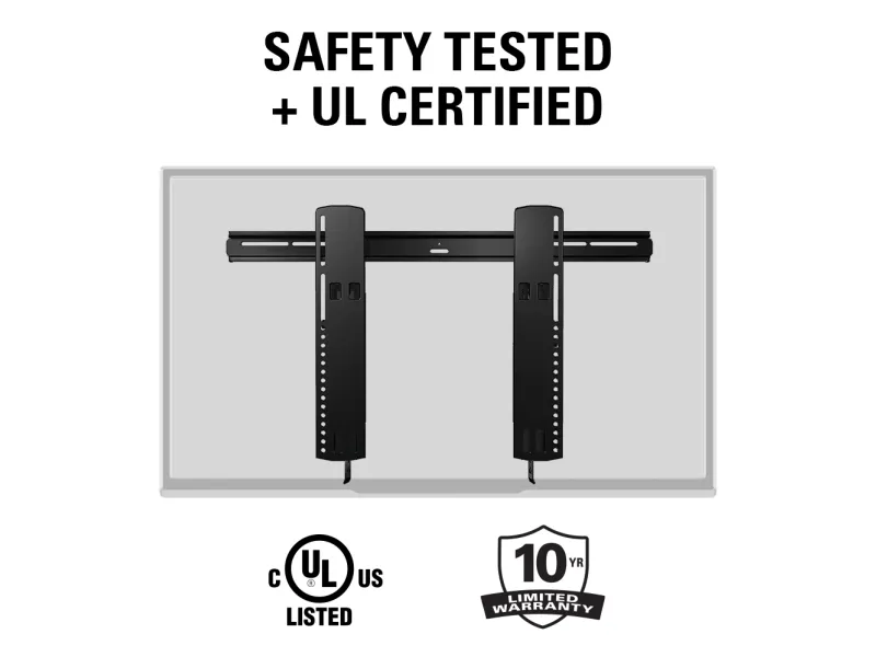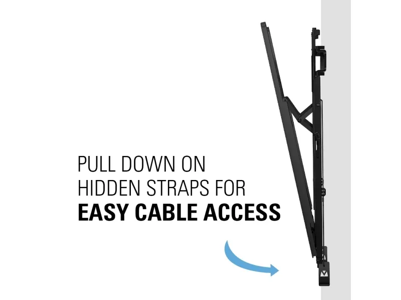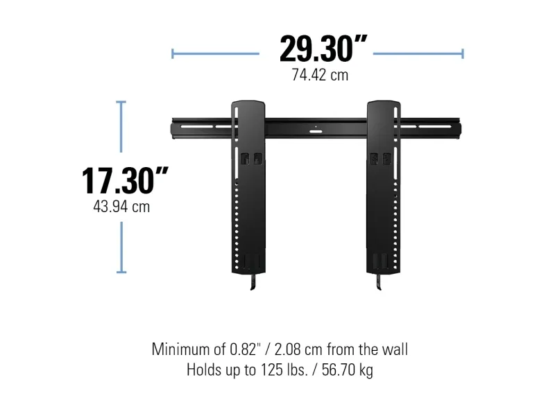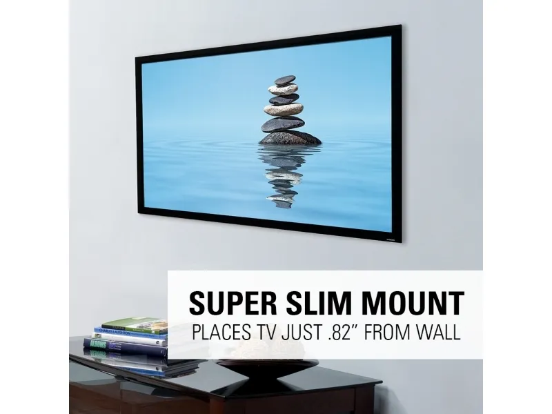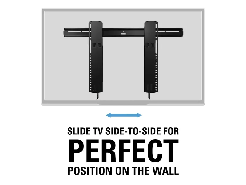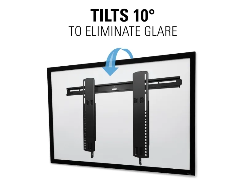 The SANUS VLT16 Super Slim tilting mount places 51" – 80" TVs just .82" / 2.08 cm from the wall, yet still allows up to 10° of tilting capability. The VLT16 features the revolutionary Adjustable Virtual Axis™ technology, which allows tilt tension to be adjusted to compensate for a variety of TV depths. Unlike other ultra-thin mounts on the market, the VLT16 also offers additional exclusive features that make it incredibly easy to install and use. ProSet™ post-installation height and leveling adjustments allow the TV to be perfectly positioned after hanging. ClickStand™ technology holds the TV away from the wall for easy cable access without having to remove the TV from the mount. Wall plate mounting holes are designed to accommodate 16" / 40.64 cm or 24" / 61 cm on-center studs.\n\n- HDpro product specially created for the custom installer\n- Hardware included\n- Leveling adjustments allow TV to be perfectly positioned after hanging\n- Position your TV as close to the wall as possible\n- Pull down on hidden straps to access cables behind your TV\n- Tilt your TV for perfect viewing from the couch or floor