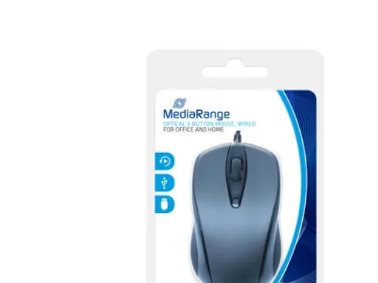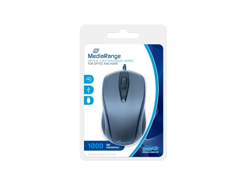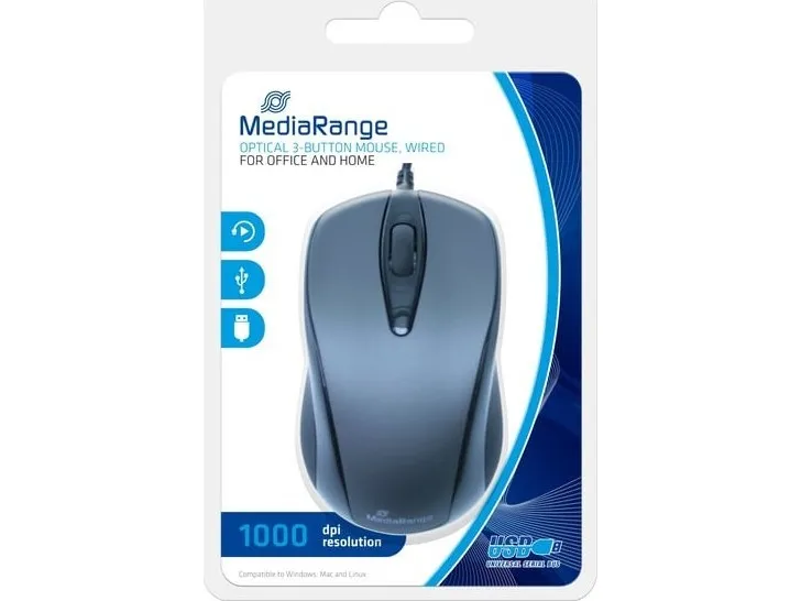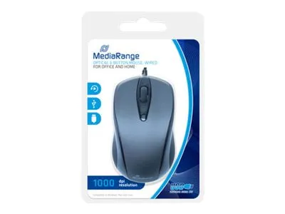 Optical 5-button mouse with USB plug and scroll wheel with button function.