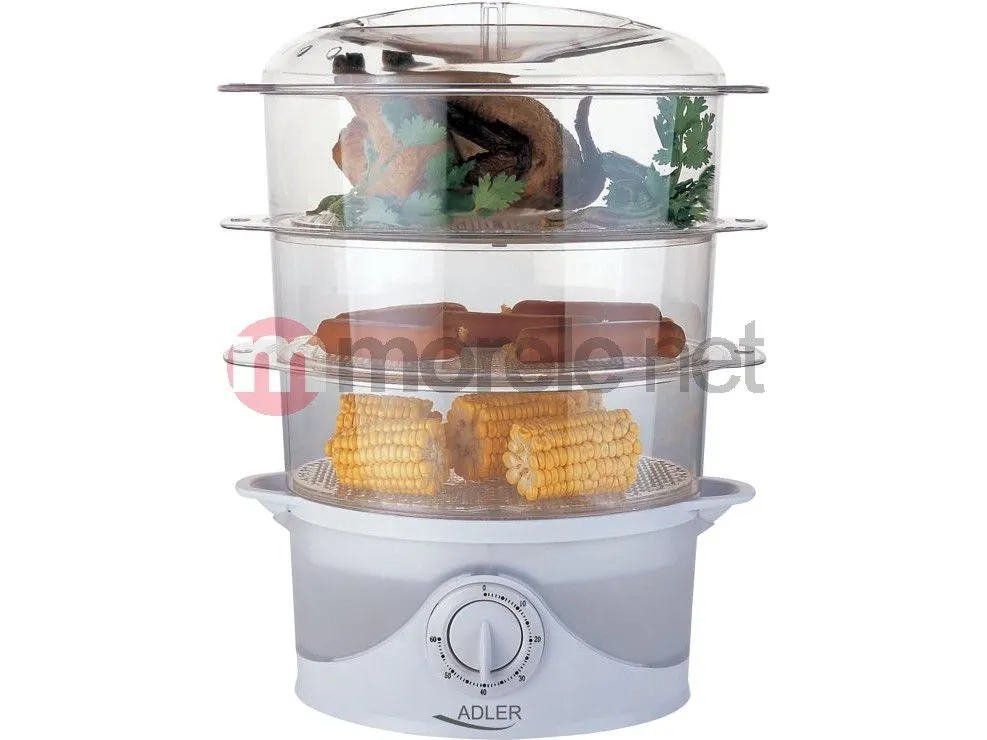 A functional steam cooker rated at 800W. A couple of different dishes can be prepared simultaneously due to having the possibility to place one tray on another. The produced steam circulates inside the device ensuring that all the products would be heated. It is a perfect device for people who appreciate light low-fat meals. In the steam cooker different products can be prepared: vegetables, meat, fish. It also has built-in egg trays. What is more, the steam cooker is characterised with a very fast start-up time what allows to prepare a meal even faster. Thanks to a build-in timer it is easy to prepare the meal just as you wish.