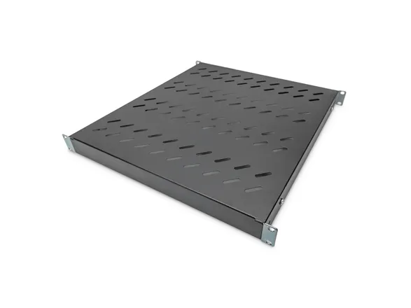The shelves are easy to install at the four 483 mm (19") profile rails of your 483 mm (19") cabinets. Due to the sturdy, perforated sheet steel, with a load capacity of up to 50 kg, they are the optimal surface for your network components. Furthermore, the shelves are compatible with any popular 483 mm (19") mounting profile rails. The respective mounting rails are variable in depth. Available in standard color grey (RAL 7035) and black (RAL 9005).