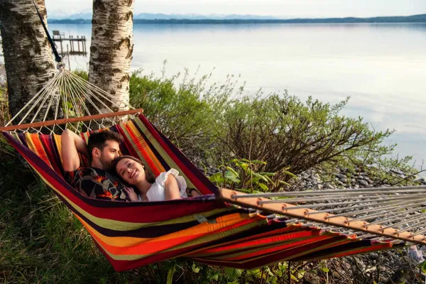 Vicente, our partner in Brazil, is responsible for choosing the right threads. He pays particular attention to stability, colour fastness and freedom from harmful substances. João, our master weaver, knots up to 6000 longitudinal threads per hammock by hand. This, in combination with the high power of the loom, ensures the exceptional stability of AMAZONAS hammocks.