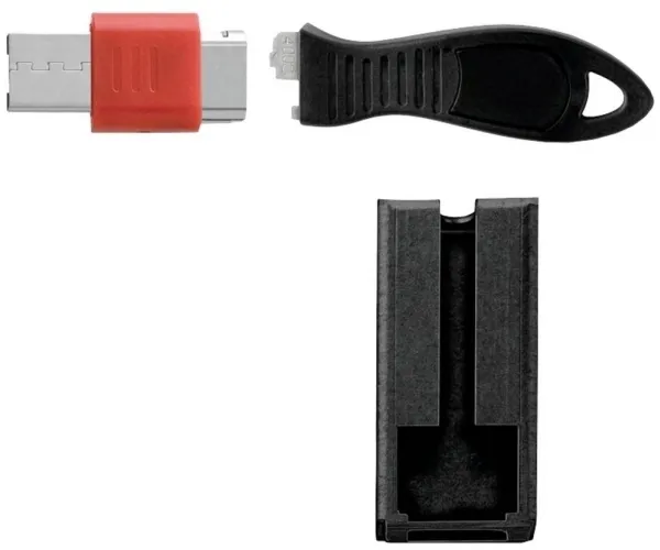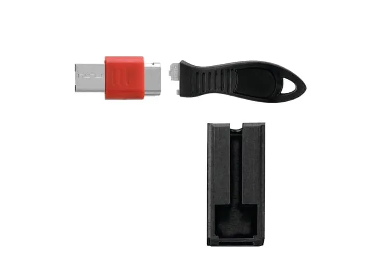 Reduce the risk of data leakage, data theft and unauthorized uploads with a software-free solution that physically blocks USB ports from unauthorized access. The USB Port Lock with Cable Guard - Square has the ability to block multiple adjacent ports, one with an active USB device such as keyboard or mouse with one lock, allowing continued secure use of authorized USB devices.