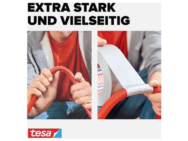 tesa extra Power Universal is a multi-purpose duct tape characterized by extra strong bonding power. It is an excellent extra power duct tape and a versatile repairing tape that matches a wide range of applications. While it stands out for its superior strenght, this duct tape can easily be torn by hand and is therefore always ready for quick repairs, handicrafts, fastening, bundling, strengthening, marking and much more. Being a universal repairing tape for indoor and outdoor applications, it is sufficiently weather resistant and sticks to almost any surface.\n\n- For handicrafts, repairing, fastening, bundling, strengthening, marking and much more\n- For daily uncomplicated solutions and quick & easy repairs\n- Very good adhesion to all types of surfaces\n- Weather-resistant for in-and outdoor applications\n- Tearable by hand\n- Solvent-free