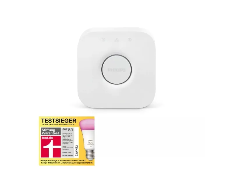 Personlig trådløs belysning Hue Bridge, hjernen i Philips Hue intelligente belysningssystem, lar deg koble til og styre opptil 50 lys og tilbehør. Bare plugg den inn og bruk Hue-appen til å angi rutiner, tidsstyring, egendefinerte lysscener og mer.