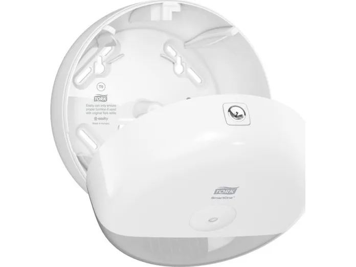 The Tork SmartOne® Mini Toilet Roll Dispenser in Elevation Design is a modern efficient dispensing system suitable for demanding washrooms with low to medium traffic. The sheet-by-sheet dispensing helps reduce consumption by up to 40% compared to traditional jumbo roll dispensers, which means more visits per roll. Tork Elevation dispensers have a functional, modern design that makes a lasting impression on your guests.
