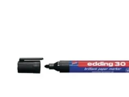 Marker, Edding 30 Permanent marker, som skriver i sort. Medium, 2 mm stregbredde. Blækket er varmebestandig til 100 grader, vandbaseret og lysægte. Skriver på overflader som papir, plast, glas og metal. Velegnet til papir og karton, da blækket ikke trænger igennem. Best.enhed: stk. Kolli a 10 stk. Yderkarton a 400 stk.