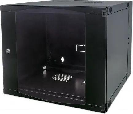 Intellinet Network Cabinet, Wall Mount (Double Section Hinged Swing Out), 12U, Usable Depth 385mm/Width 465mm, Black, Flatpack, Max 30kg, Swings out for access to back of cabinet when installed on wall, 19", Parts for wall install (eg screws/rawl plugs) not included - skap - 12U