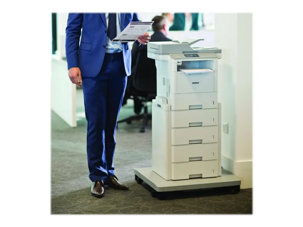 Optional tower tray with four 520-sheet capacity trays and a stabilizer with wheels. Maximum capacity based on using 20 lb. paper. Add the TT-4000 to a compatible model for printing mixed paper size documents such as letter / legal, letterhead, and colored paper.