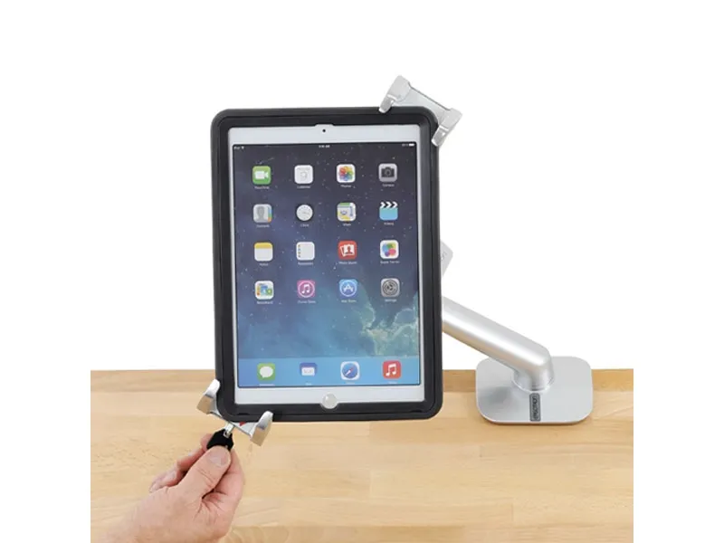 Convert a monitor mount to securely hold a tablet. The locking interface makes it the perfect solution for info kiosks, interactive restaurant ordering, public signage or healthcare patient entertainment - anywhere theft deterrence is a priority.
