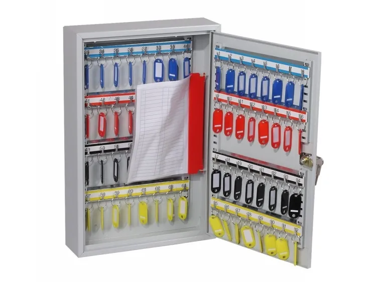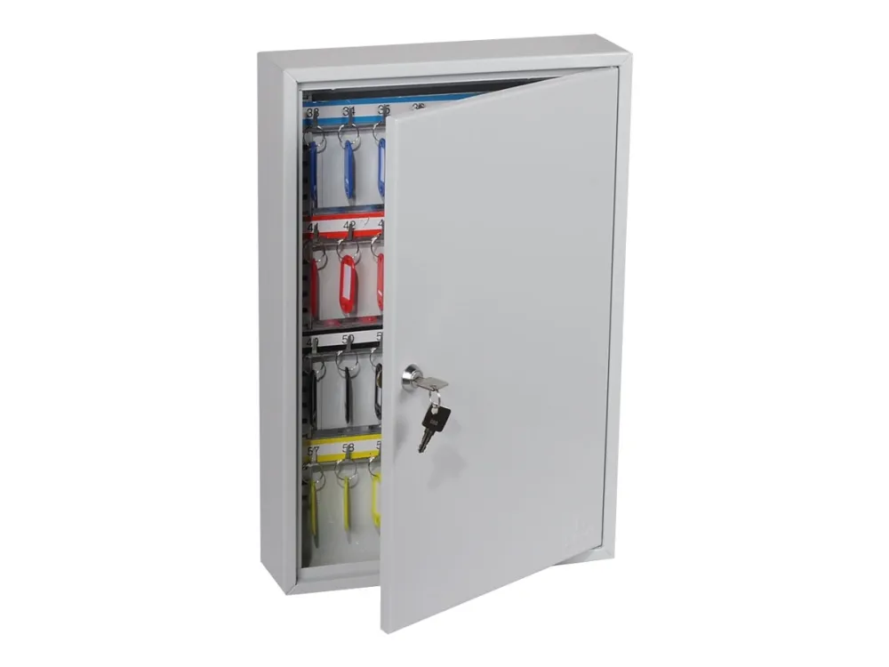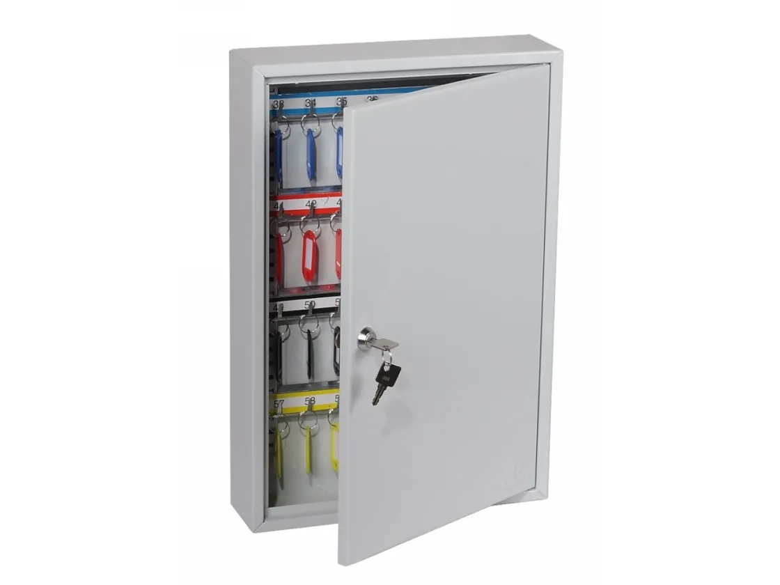 A series of high quality key-locking Key Cabinets ranging from 42 hooks up to 600 hook units. Cabinets are manufactured with a high quality cylinder key lock supplied with 2 keys. Each unit comes with adjustable hook bars and number labels to suit. The 400 and 600-hook units are double door cabinets. The cabinets have pre-drilled fixing holes for wall mounting. Finished in a high quality durable powder coated finish.