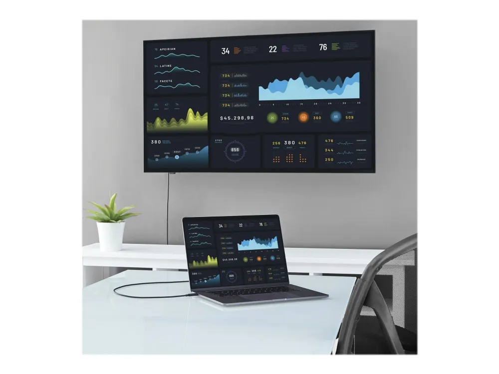 At 3.3ft. (1 m) in length, this monitor cable delivers a compact connection that eliminates excess adapters and cabling, ensuring a tidy, professional installation. For longer installations, a 6 ft. (1.8 m) (CDP2DPMM6B, CDP2DPMM6W) and a 9.8 ft. (3 m) (CDP2DPMM3MB, CDP2DPMM3MW) USB-C to DP cable enables you to choose the right cable length for your custom installation needs.