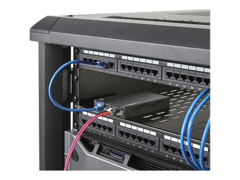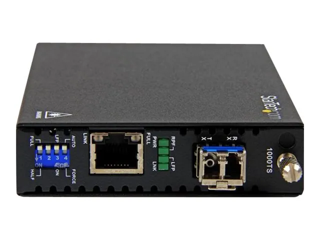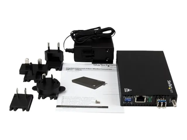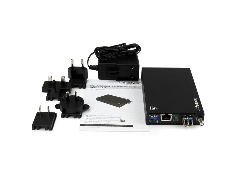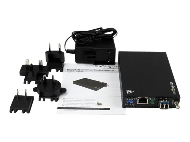 This Gigabit Ethernet to fiber media converter is a cost-effective way to extend your network, or extend the distance between two devices by up to 20 km (12.4 mi.).\n\nFiber network connections provide greater distance and security, with less electromagnetic interference (EMI) than typical RJ45 copper-based networks, making it perfect for IT professionals and secure setups in government, business, or educational applications.\n\nFlexible integration into mixed network environments\nThis versatile copper-to-fiber converter supports standalone operation, or alternatively it can be installed into the StarTech.com Rackmount Chassis (ETCHS2U - sold separately), giving you more options for integration into your existing network. The card module can also be inserted back into the ET91000SM20 enclosure, plus it’s compatible with enclosures from other StarTech.com ET91000 series media converters (sold separately).\n\nThe converter features a pre-installed Gigabit SFP transceiver with LC connectors. Should your network infrastructure change in the future, you can easily swap and replace the module to adapt the media converter to your new network requirements.\n\nWith flexible integration and connectivity up to 20 km away, you can provide network access to remote areas in other buildings, or in areas where Wi-Fi® is unreliable or unavailable.\n\nRugged and reliable\nThis heavy-duty fiber media converter is designed for maximum reliability. It features a metal (steel) enclosure, so it can withstand the demands of harsh environments such as factories or warehouses.\n\nPlus, by relying on this more durable fiber media converter, you can reduce the strain on your existing copper-based network equipment and potentially extend the life of those devices, which helps save future expenses.\n\nDiagnose and correct issues easily\nThis high-performance media converter supports a range of network setup and diagnostic protocols (for example, Link Fault Passthrough, Auto Laser Shutdown (ALS), and Auto MDIX, so you can set up and troubleshoot your network easily.\n\nPrepare your network for the future\nIf your existing network consists of RJ45 copper-based devices and cables, you might not be ready for future network expansion. Because the newest fiber-based network switches feature SFP ports more often than RJ45 ports, you might need a converter to bridge your copper and fiber networks together.\n\nThe ET91000SM20 is backed by a StarTech.com 2-year warranty, and free lifetime technical support.