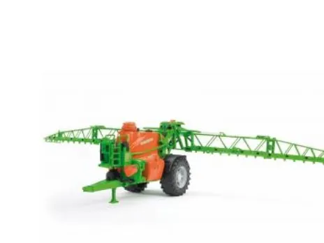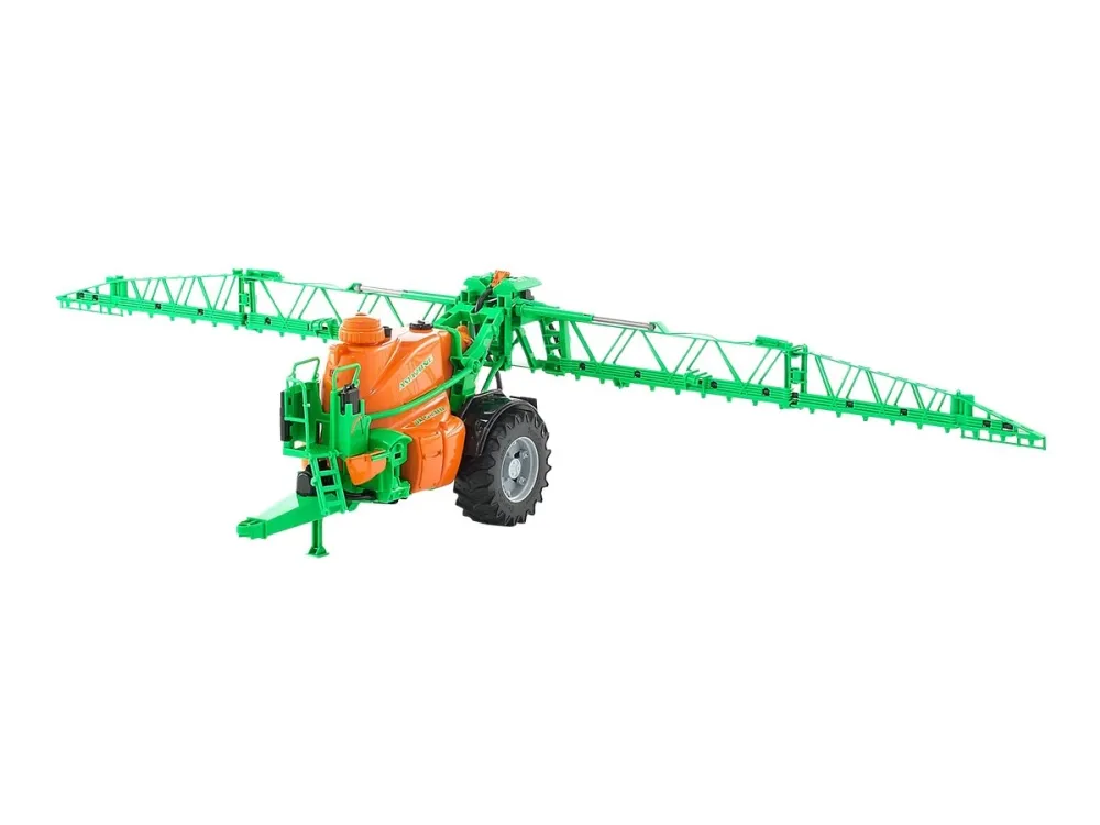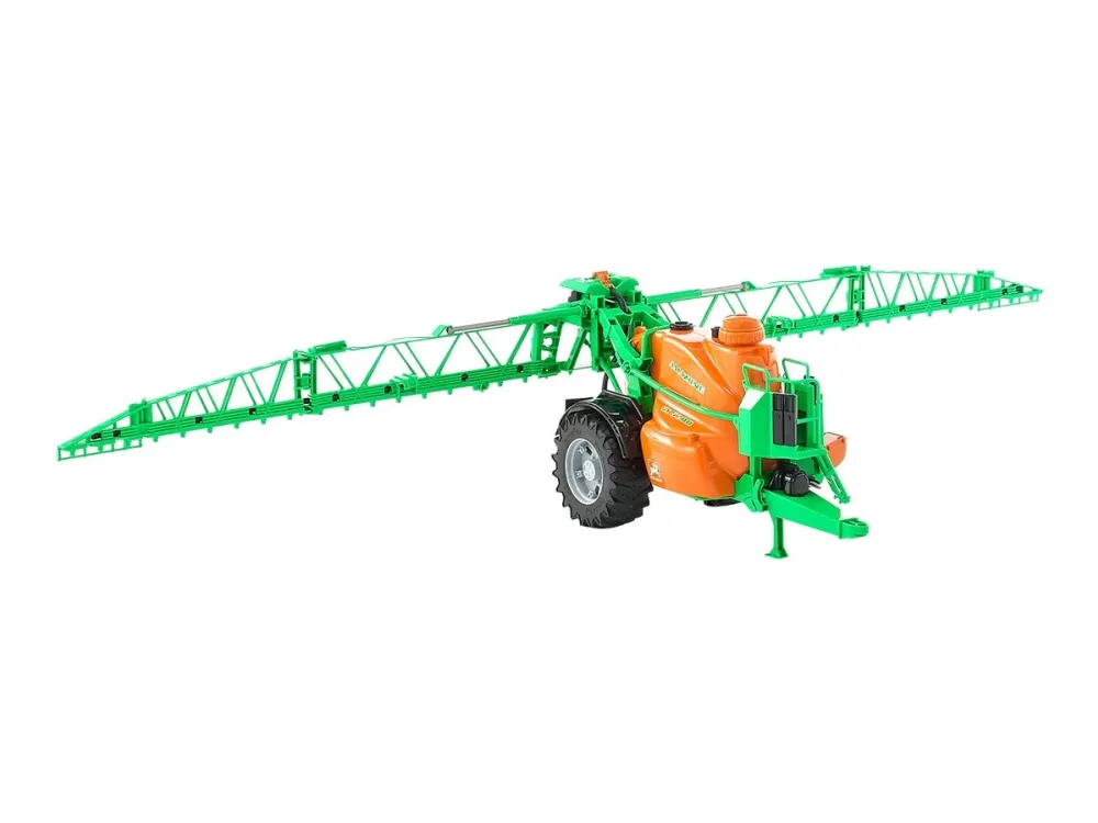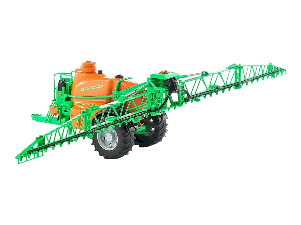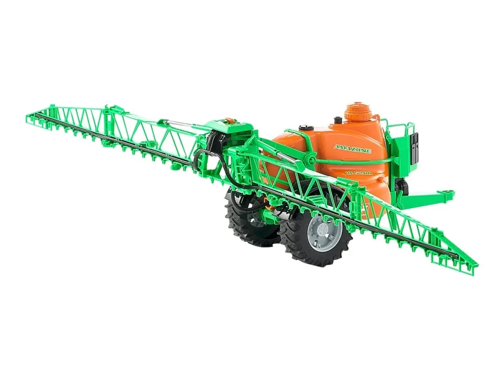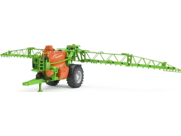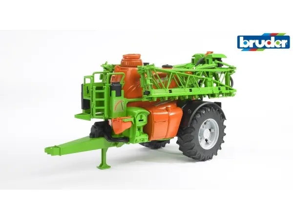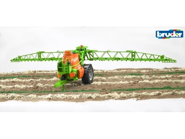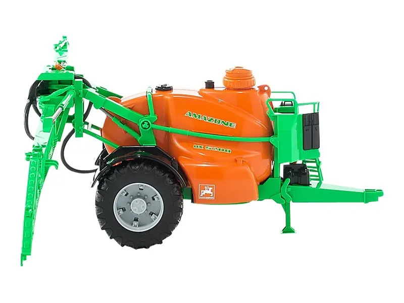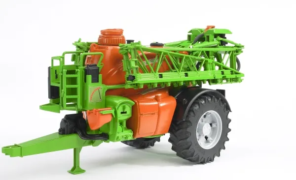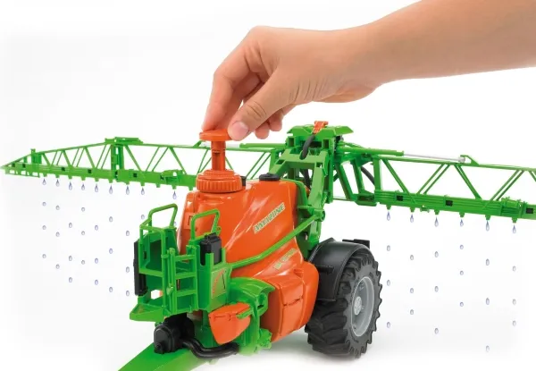 Description Fertilising, sowing, and plant protection are essential tasks in agriculture. For 125 years, Amazone has been developing tools that are particularly made for these applications and include trailed spreaders used for plant protection. The top model is the crop sprayer 5200 of the UX series; with operating widths of up to 40 metres, this model is capable of spraying large areas without interruption thanks to its capacity of more than 5,000 litres. As the leading manufacturer of model agricultural vehicles, BRUDER has designed a trailed sprayer on a scale of approx. 1:16 and underscores its exceptional market position by the many realistic characteristics integrated into this model. Just like its real-world brother, the BRUDER crop sprayer has, as its most prominent characteristic, a fully functional spreader unit with fillable water tank whose sophisticated pump and hose system easily spreads the water across the "fields of our little farmers." Thanks to the outrigger width of approx. 1 metre, it is also possible to work on larger outside play areas "in an efficient way." Other realistic details include a fold-down support leg, an unfolding step ladder, and a height-adjustable outrigger that make playing with this crop sprayer even more fun and this toy truly unique.