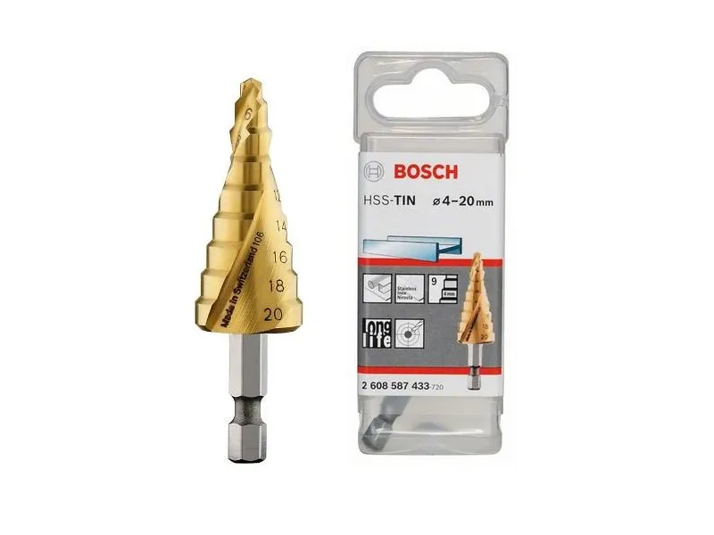 Trinbor HSS-tin, 4 - 20 mm, 1/4 tommer, 70,5 mm, 9 trin Bemærk! Denne tekst er maskineoversat!