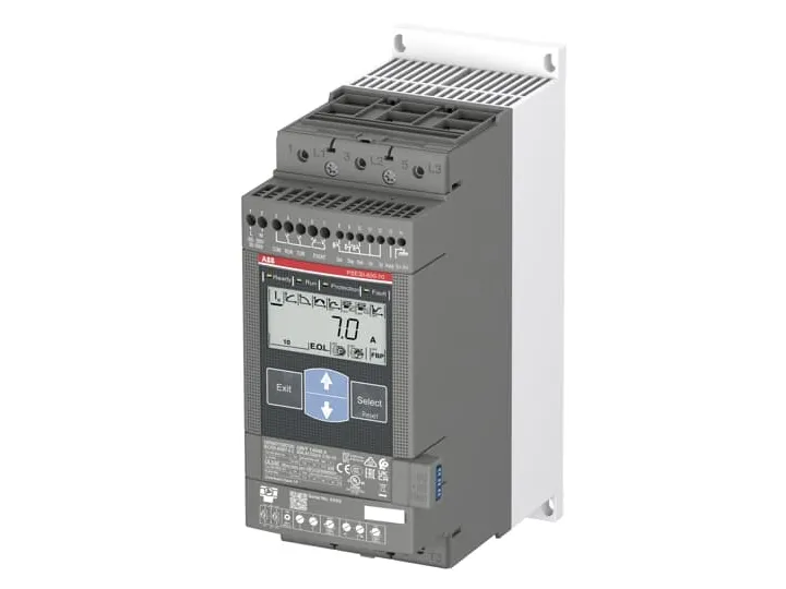 PSE30-600-70 softstarter til blød start Softstarter fra PSE-serien er verdens første kompakte softstarter med indbygget elektronisk overbelastningsbeskyttelse til motoren og indbygget momentregulering for en præcis styring af pumper. Kombinationen af kompakt konstruktion og de vigtigste funktioner giver en meget effektiv startløsning. Det belyste, sprogneutrale display med det brugervenlige tastatur med fire knapper giver mulighed for nem adgang til de avancerede funktioner på softstart. Alle nødvendige oplysninger vises desuden på displayet ved start, udløb eller ved konstant drift.