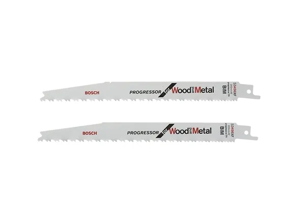 Areas of application\n- Wood with nails/metal [mm] <150.\n- Wooden boards, chipboard [mm] <150.\n- Sheet metals, pipes, profiles [mm] 3-18.\n- Plastics: pipes, profiles [mm] <150.\n- Glass fibre reinforced plastic/epoxy [mm] <150.\n\nDetails\n- Material BIM.\n- Tooth design side set, milled.\n- Tooth spacing [mm] / TPI 2,1-4,3 / 6-12.\n- Total length [mm] 200.\n- Thickness [mm] 1.25.\n- Areas of application Wood with nails/metal, chipboard (<150 mm), sheet metals, aluminium profiles (3-18 mm), glass fibre reinforced plastic/epoxy (<150 mm).\n- Type S 3456 XF.