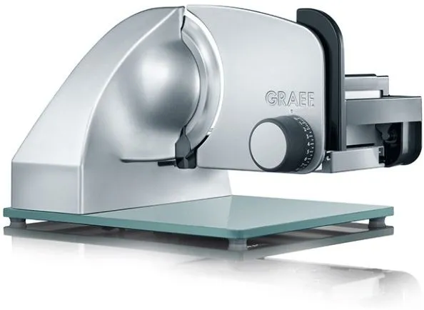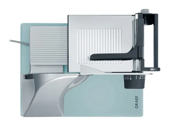 The Graef Master M 20 slicer combines design and functionality, making food preparation effortless. Made from durable metal, this slicer features a stainless-steel carriage and a glass base plate, offering a sleek look along with robustness. It includes a high-quality stainless-steel blade that allows slicing thickness up to 20 mm, meeting various culinary needs.