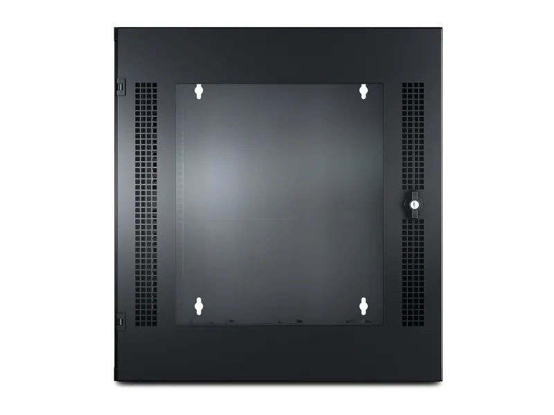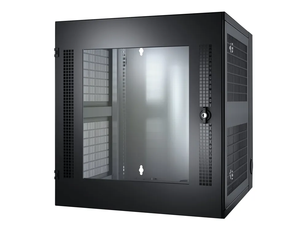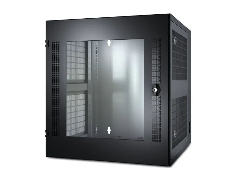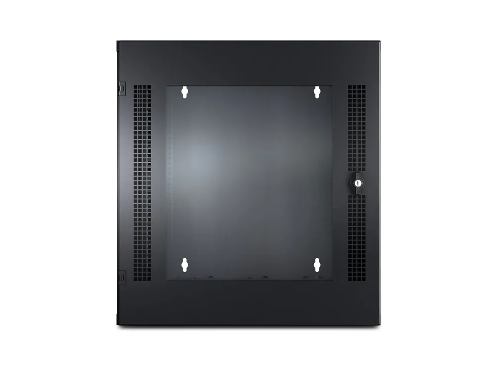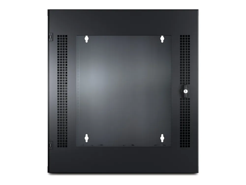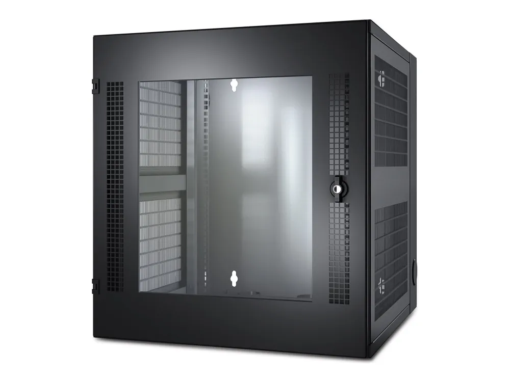 Ideal for retail, healthcare, and educational facilities, the wall rack offers an efficient solution for deploying server and networking equipment for edge computing applications. For areas with limited floor space. Designed to house your server, as well as network solutions such as network switches and patch panels. Rack hinges at the rear allowing for access to the back of the rack during installation and setup or while undergoing maintenance. The door is reversible allowing for the door to open direction desired to avoid interference with its surroundings. Optional 120V fan tray top-mounted and caster kit. Several APC Smart-UPS models low-profile provide easy UPS integration and mounting. 13U Wall mount cabinet, 19 inches maximum mounting depth, 200lb weight capacity, 19" rack width, ships fully assembled, glass door, 5 year APC warranty.