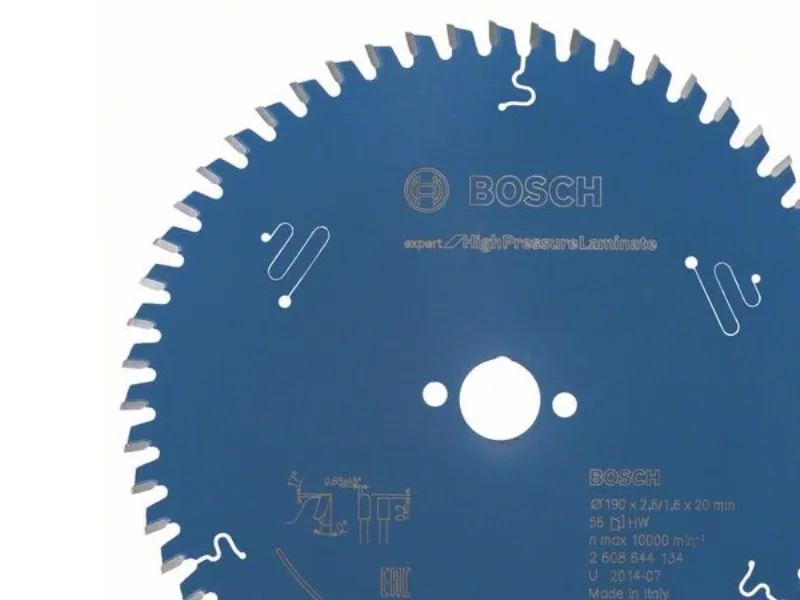 Rundsavsklinge Expert for High Pressure laminater, 190 x 20 x 2,6 mm, 56 Expert for High Pressure Laminate savklinge til skæring af højtryks-skifteholdstryksplader. Bladet har ekstra hårde Microteq-tænder, der internt hos Bosch er fremstillet af meget robust carbid-korn. Den gode kvalitet, som træarbejderne forventer, evnen til at klare ekstreme betingelser i professionelle konstruktioner. Denne effekt understøttes af beskyttelsesbelægningen på bladene, som forhindrer korrosion og muliggør pålidelig skæring, mens gnidningen reduceres. Produktet er udstyret med dæmpningsslidser til særlig rolig drift, betydeligt mindre støj og mærkbart lavere vibration. Brug denne savklinge ved højtryks-skifteholdstryksplader, som for eksempel Trespa. Kompatibel med dykker- og håndrundsave. Med HLTCG-tænder (High-Low Triple Chip Ground) er Expert for High-Pressure Laminate rundsavsklinge robust til arbejde med slibende materialer. Udvendig diameter mm: 190, boring mm: 20, skærebredde (b1) mm: 2,6, stampladetykkelse (b2) mm: 1,6, skærebredde (b1) mm / grundklingetykkelse (b2) mm: 2,6/1,6, tandantal: 56, tandform: HLTCG, Max. Rotationshastighed (omdr/min): 10000, snitresultat: 4, NL/diameter TKS: 2/6/32,5, spånvinkel ° w1: 0, frivinkel ° w2: 17