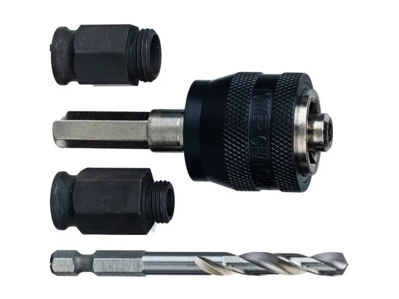 Power CHANGE-adapter, 9,5-mm (3/8)-sekskantsoptagelsesskaft Power CHANGE-adapteren forbinder hulsav og elektrisk værktøj så hurtigt som intet andet Quick-Change-system. Denne enestående adapter forbinder og adskiller hulsav og centreringsbor med et enkelt klik. Borekernen kan også nemt fjernes. Dette helt nøgleløse system er hurtigere og mere effektivt. Den er egnet til alle bore- /skruemaskine med og uden kabel. Power Change adapter System fra Bosch er patentbeskyttet.