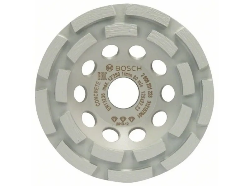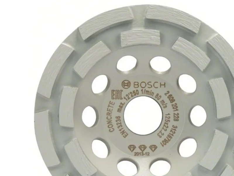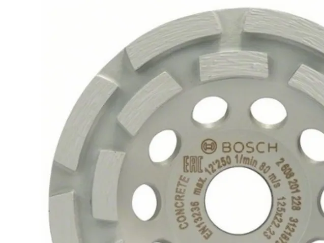 The Best for Concrete diamond grinding head has an outstanding lifetime when grinding thick layers of concrete. Its double row of segments ensures excellent durability while the head grinds with less gouging than single-row cup wheels. Moreover, the segments' extremely robust high-class diamond matrix is optimized to remove debris with reduced wear. This product is intended for concrete, natural and artificial stone.